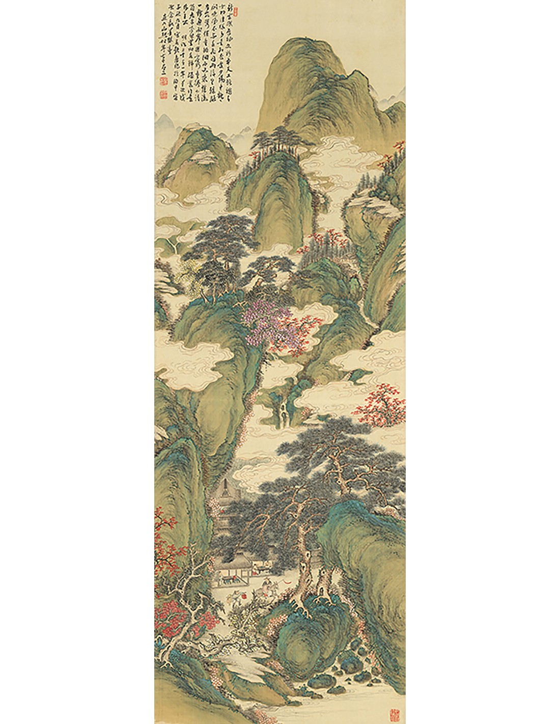 Nubes blancas y árboles carmesí