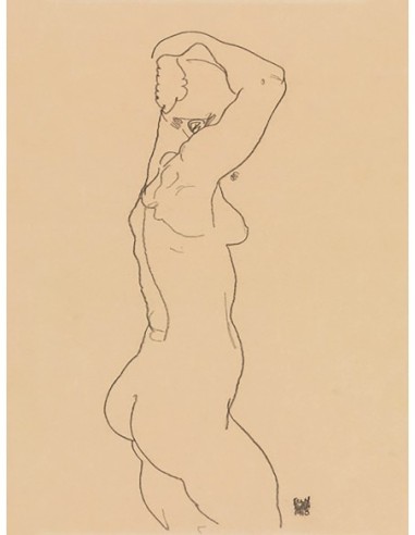 De pie desnudo, mirando hacia la derecha
