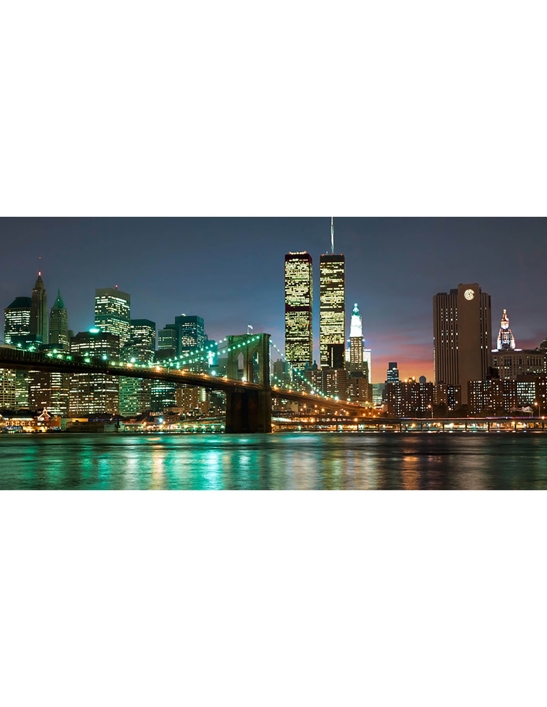 El puente de Brooklyn y las Torres Gemelas de noche