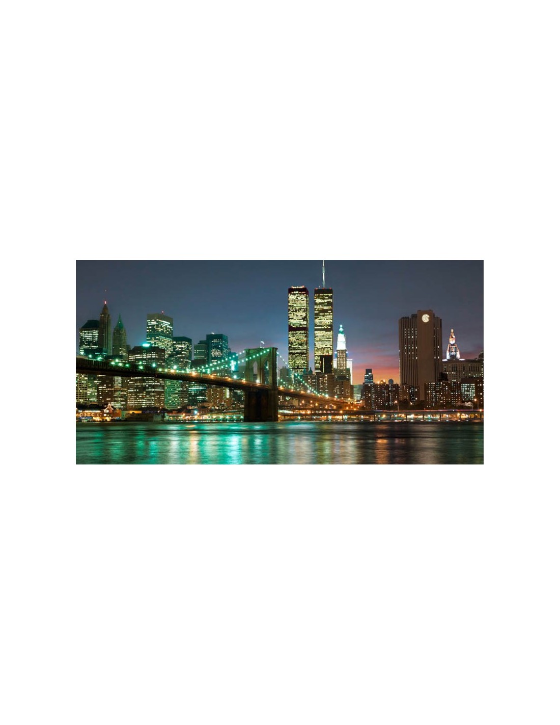 El puente de Brooklyn y las Torres Gemelas de noche