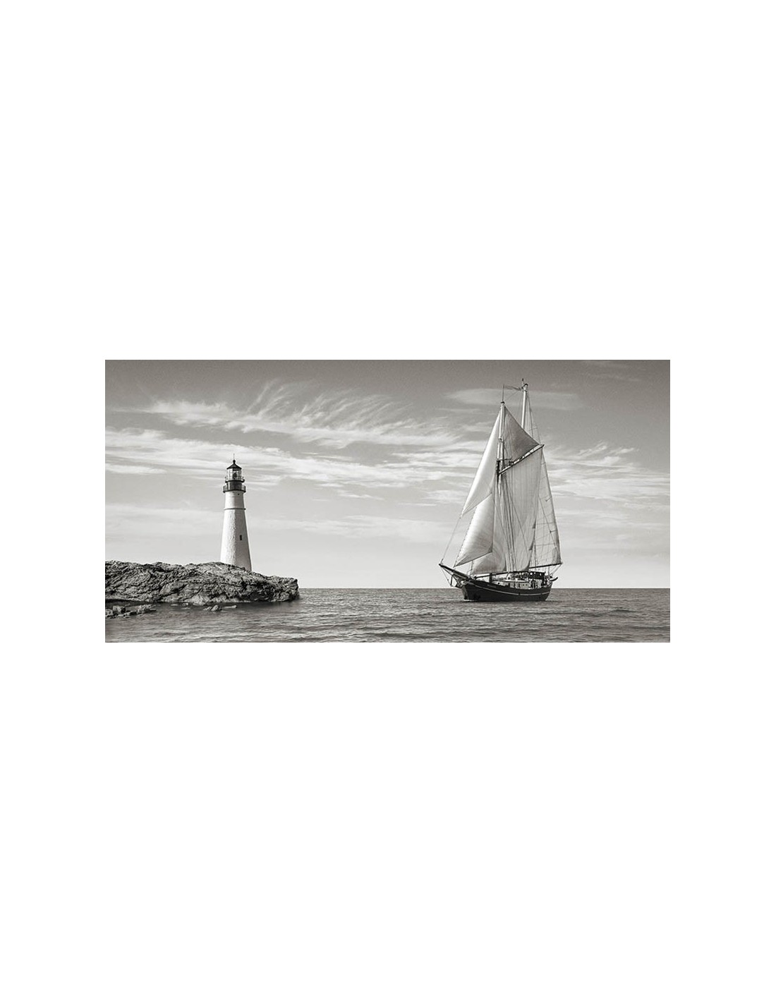 Velero acercándose al faro, mar Mediterráneo (detalle)