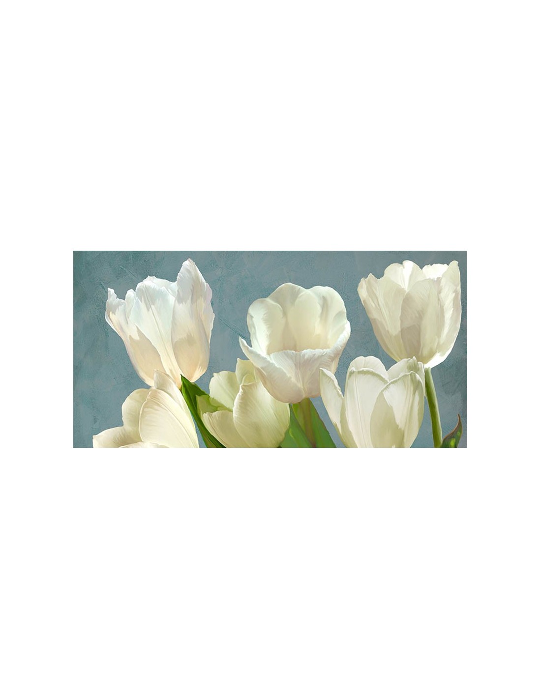 Tulipanes blancos sobre azul