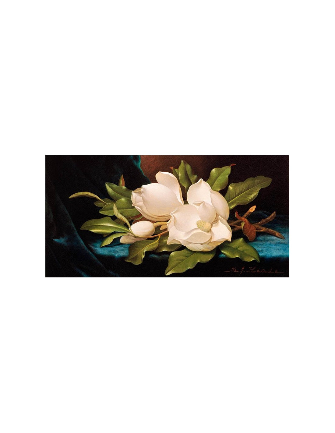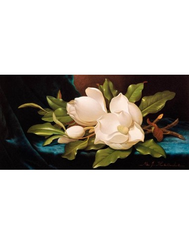 Magnolias gigantes sobre tela azul